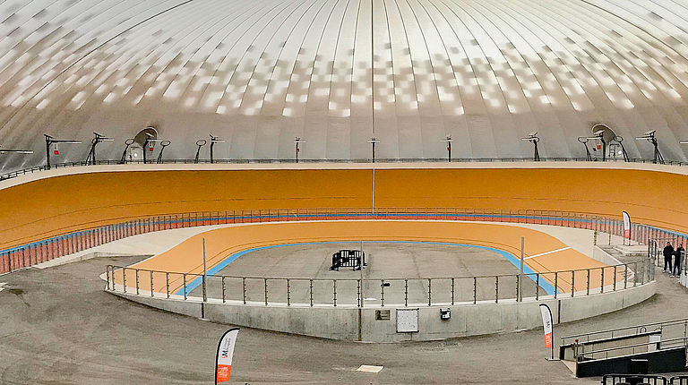 Ce site exceptionnel peut accueillir jusqu’à 1 636 spectateurs, répartis dans les tribunes de 250 places assises, debout autour de la piste et dans le quartier coureur.